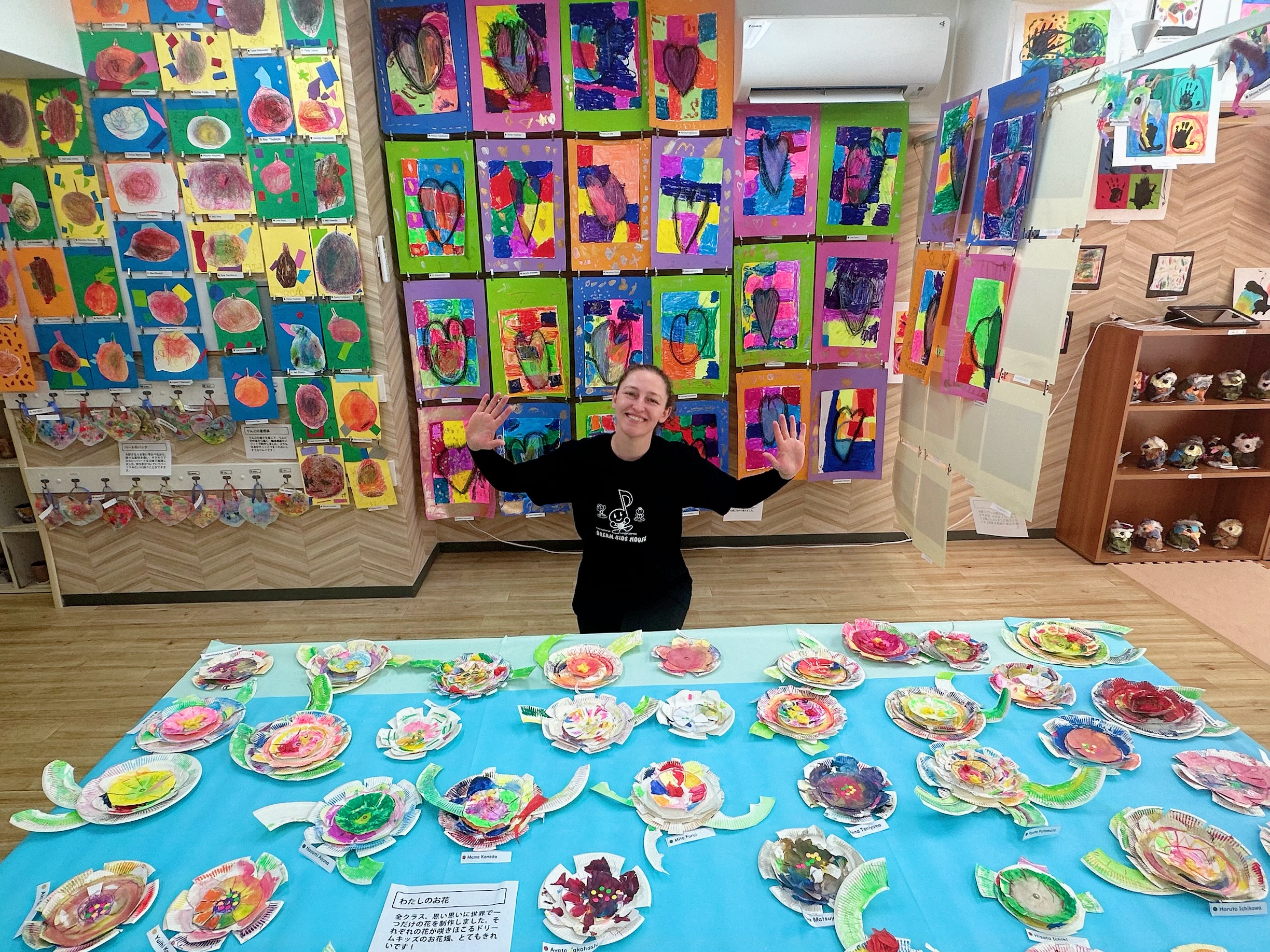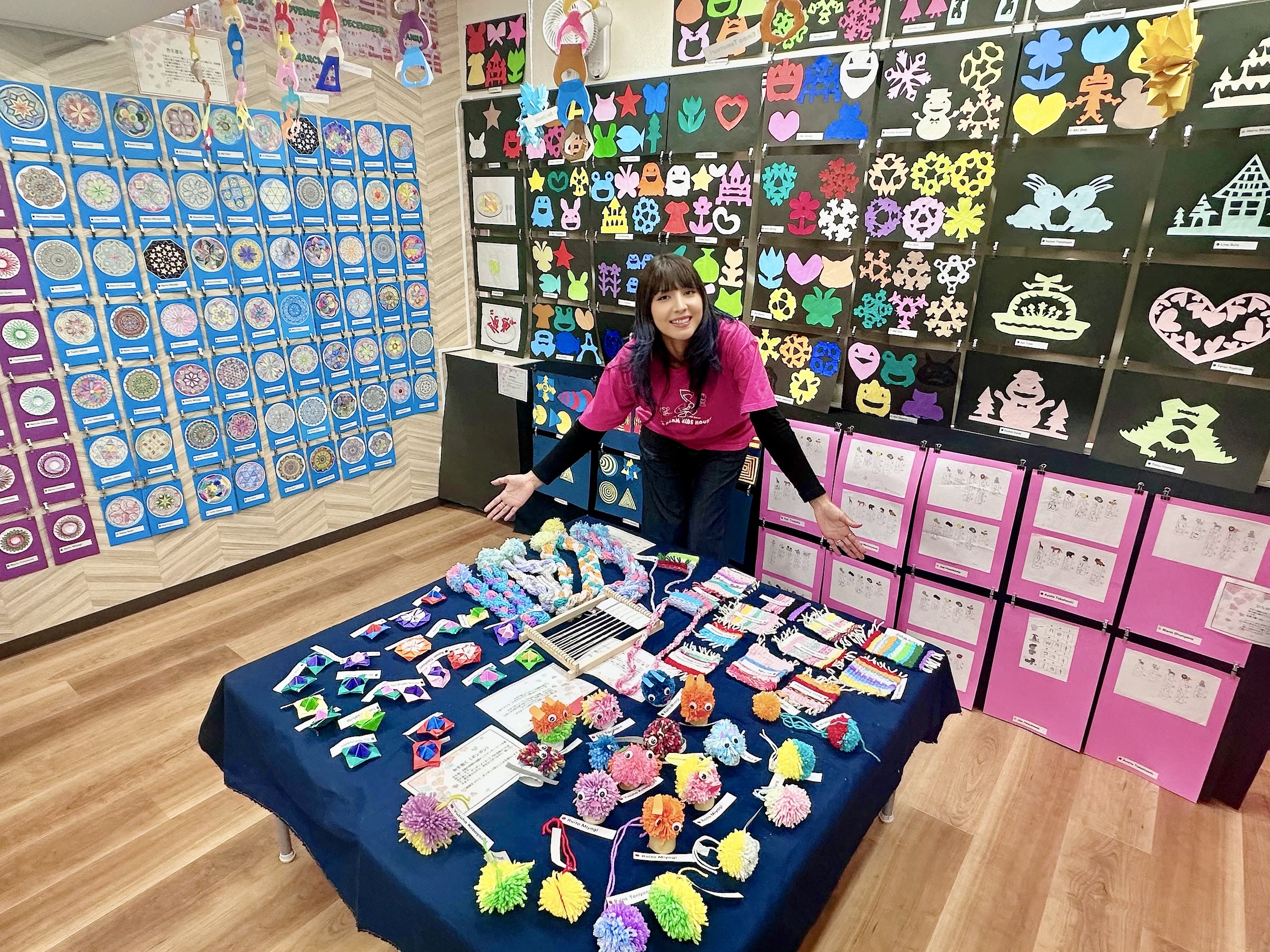Art+モンテッソーリのカリキュラムで作りためた作品の数々を保護者の皆さまにお披露目しました。